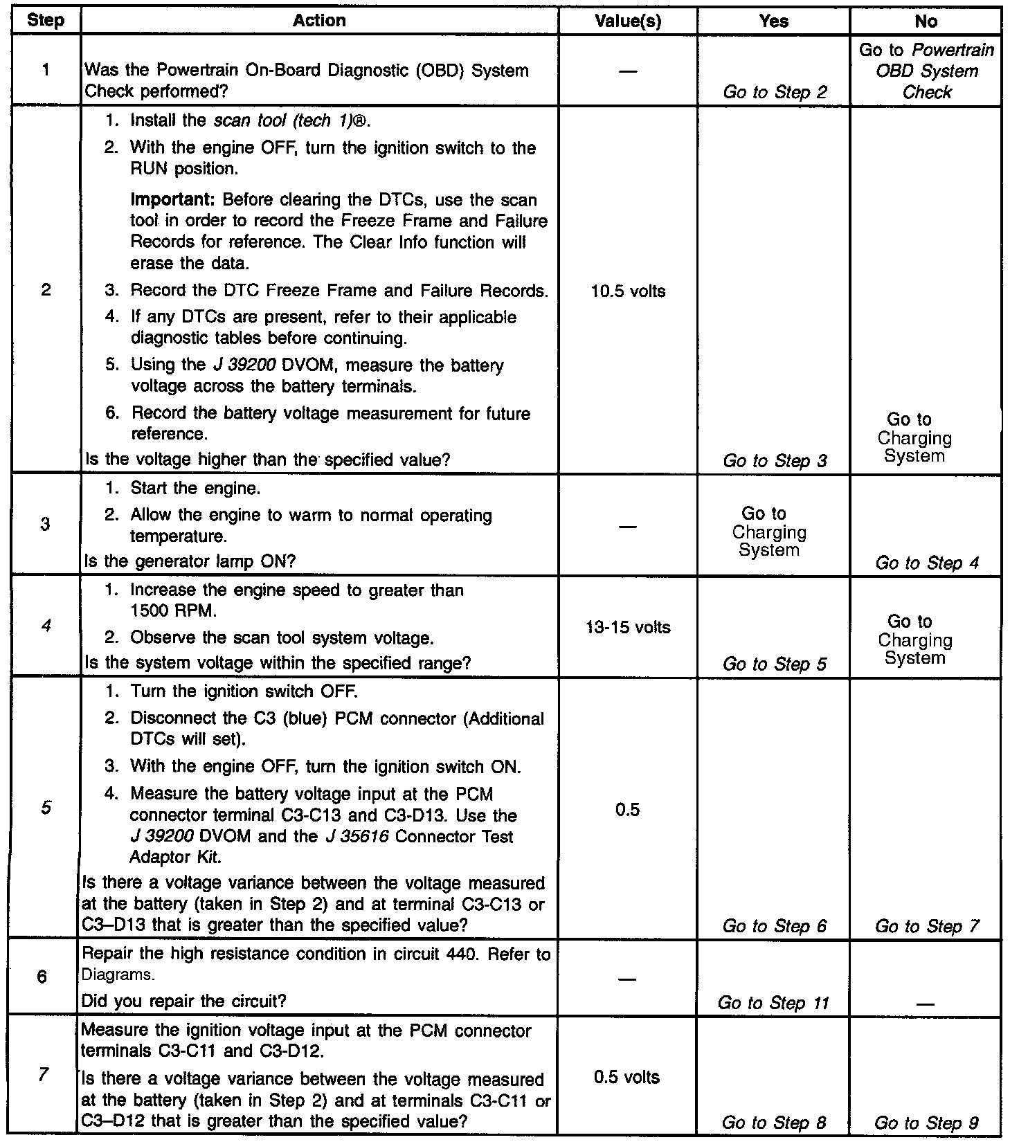 Circuit 439 is the ignition voltage feed for the PCM. Circuit 440 is the battery feed for the PCM. When the PCM detects a low voltage, a high voltage for a long time, or a high voltage for a short time, then DTC P0560 sets. DTC P0560 is a type D DTC.