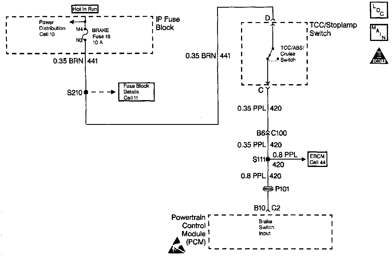 ^ Inspect the wiring for poor electrical connections at the PCM Inspect the wiring for poor electrical connections at the TCC brake switch. Look for the following conditions: