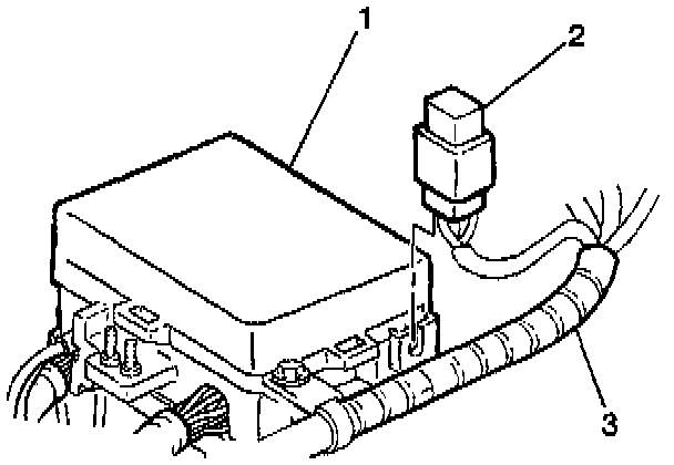 The auxiliary cooling fan is controlled by the VCM. The VCM controls the ground path for the cooling tan relay. The relay consists of (1) under hood fuse relay center (2) auxiliary cooling fan relay (3) wiring harness and is used to control the high current flow to power the cooling fan motor. The VCM determines operation of the independent fans based on various sensor inputs.