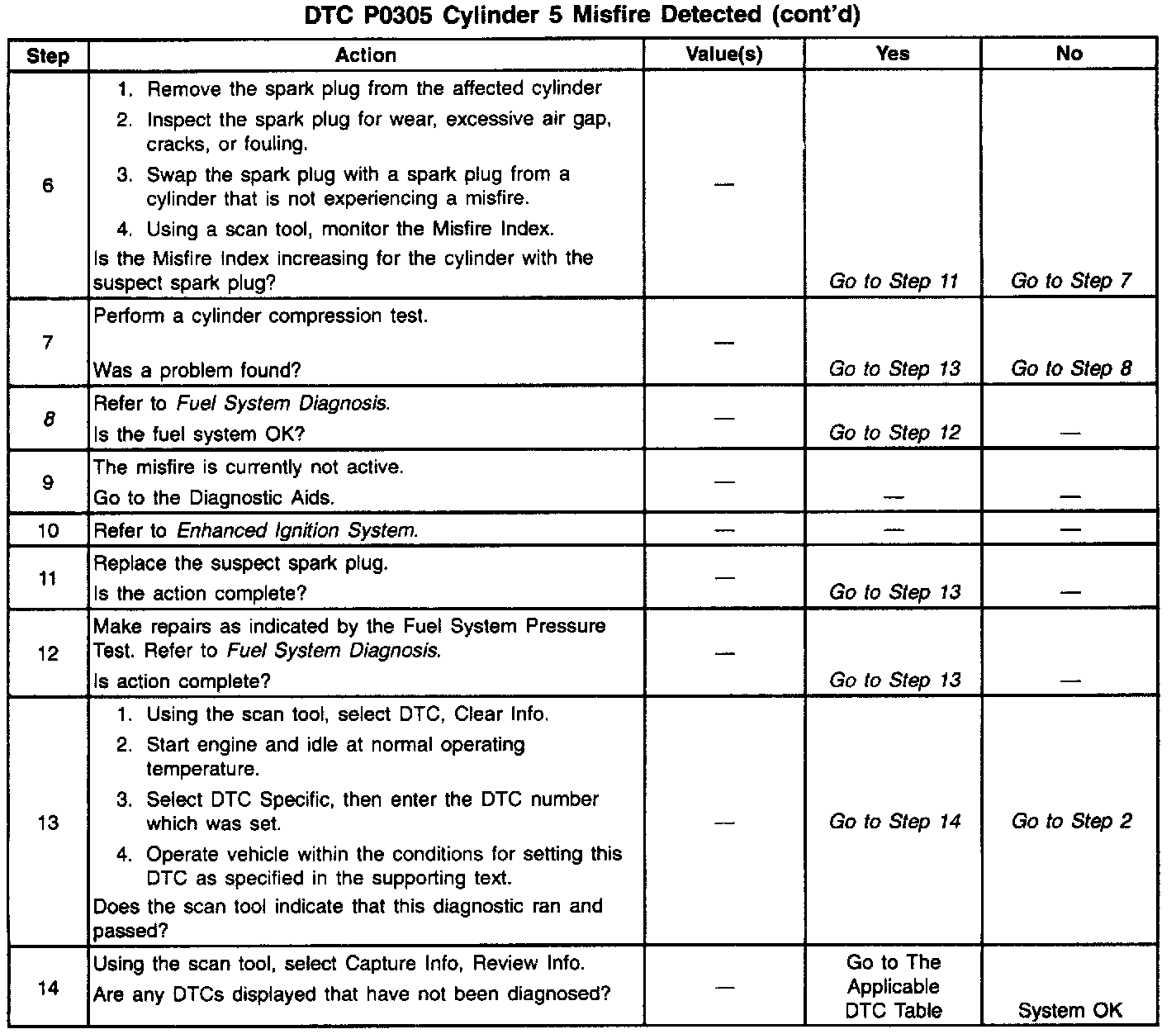 The numbers below refer to the step numbers in the diagnostic table.