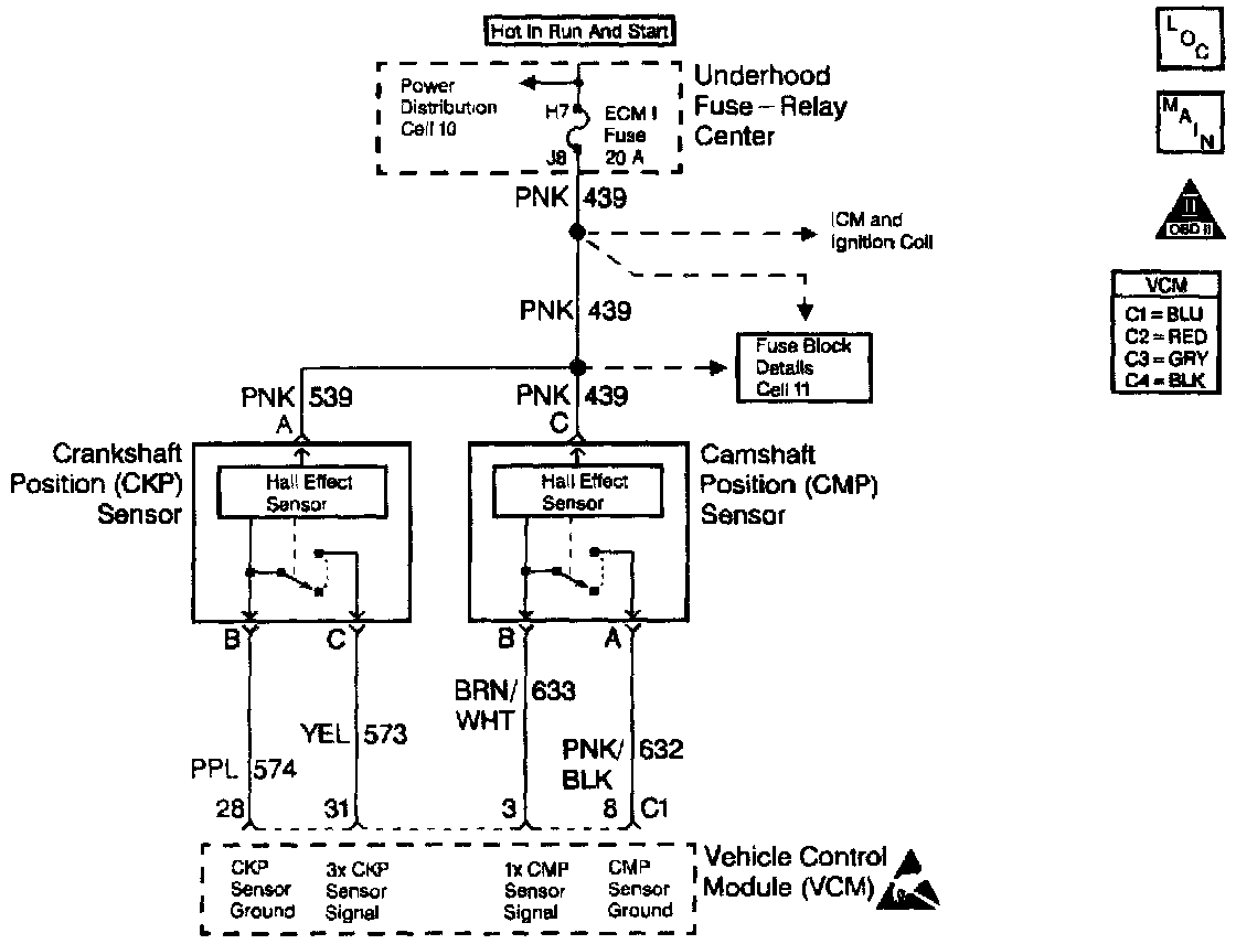 3. Checks the ignition feed circuit to the Crankshaft Position sensor.