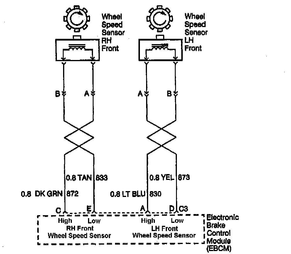 ABS/RF & LF Wheel Speed Sensors Circuit Schematic: