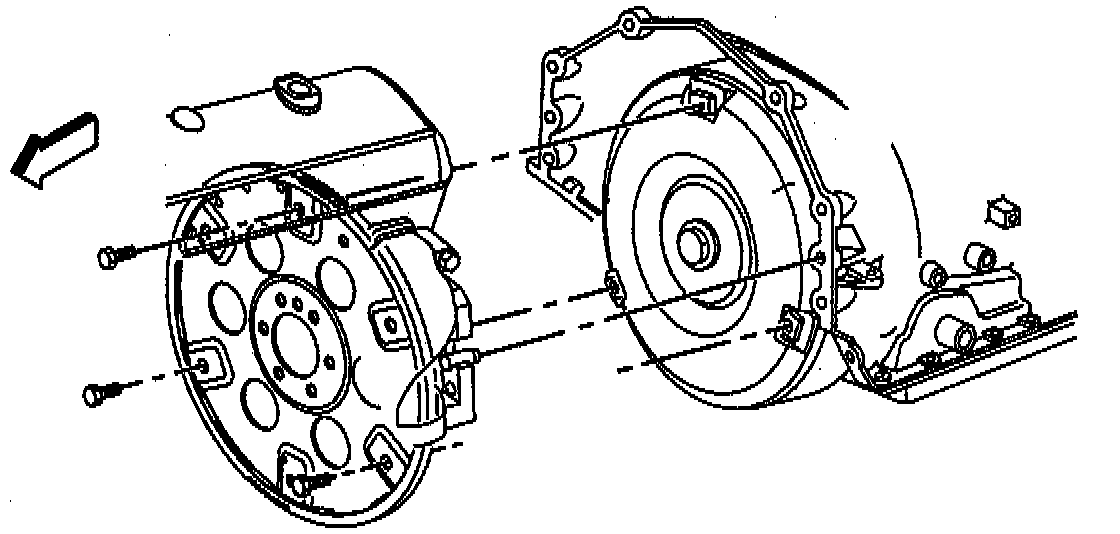 - Tighten torque converter cover bolts to 33 Nm (24 ft. lbs.).