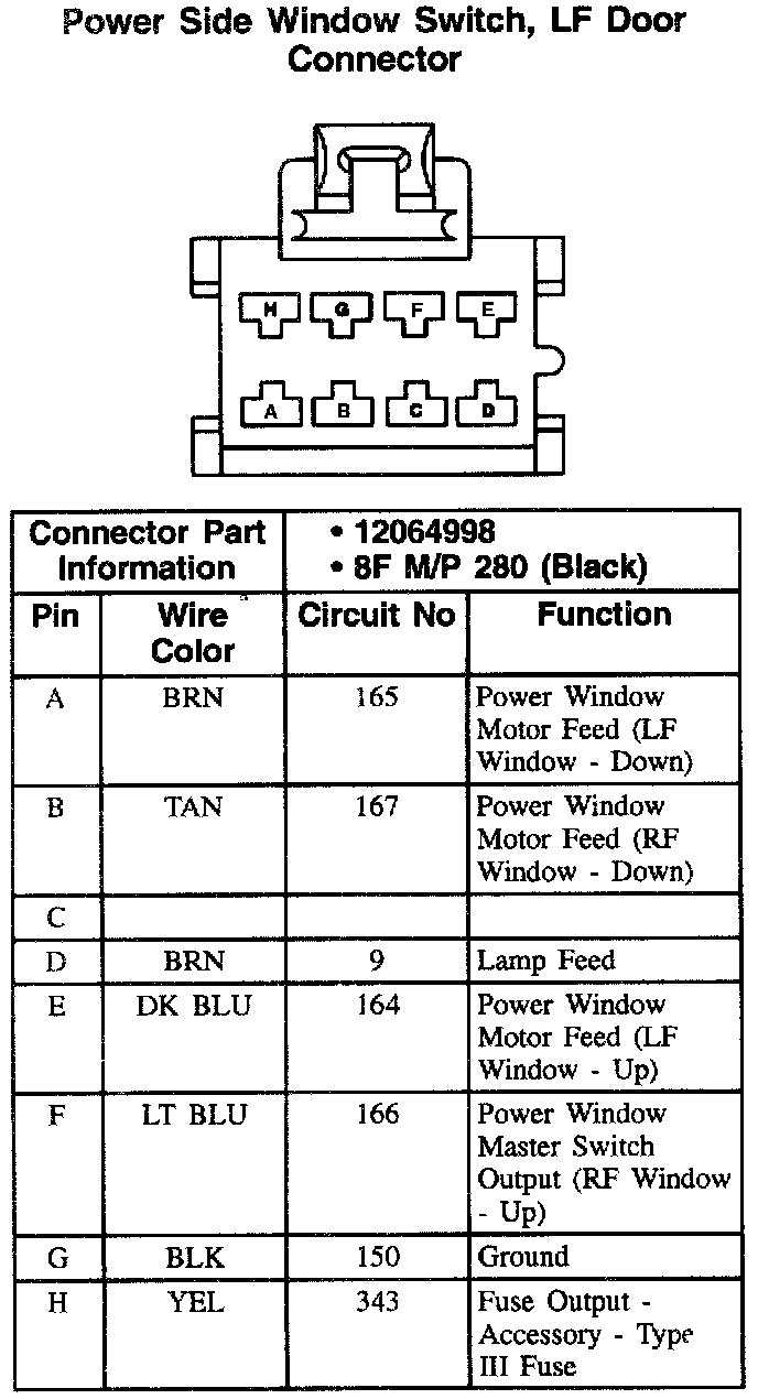 Power Side Window Switch, LF Door Connector: