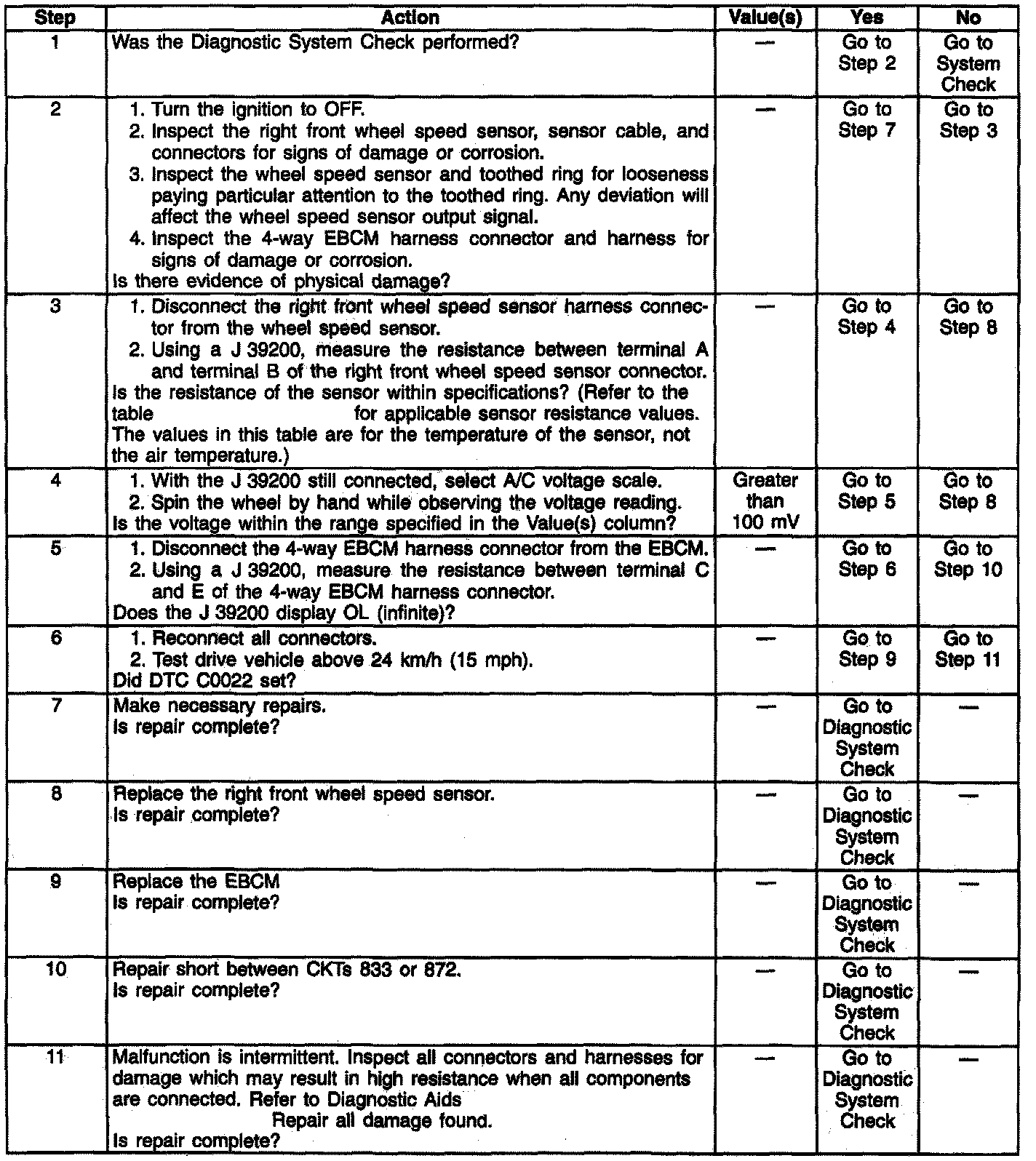 DTC C0022 - Right Front Wheel Speed Signal Missing:
