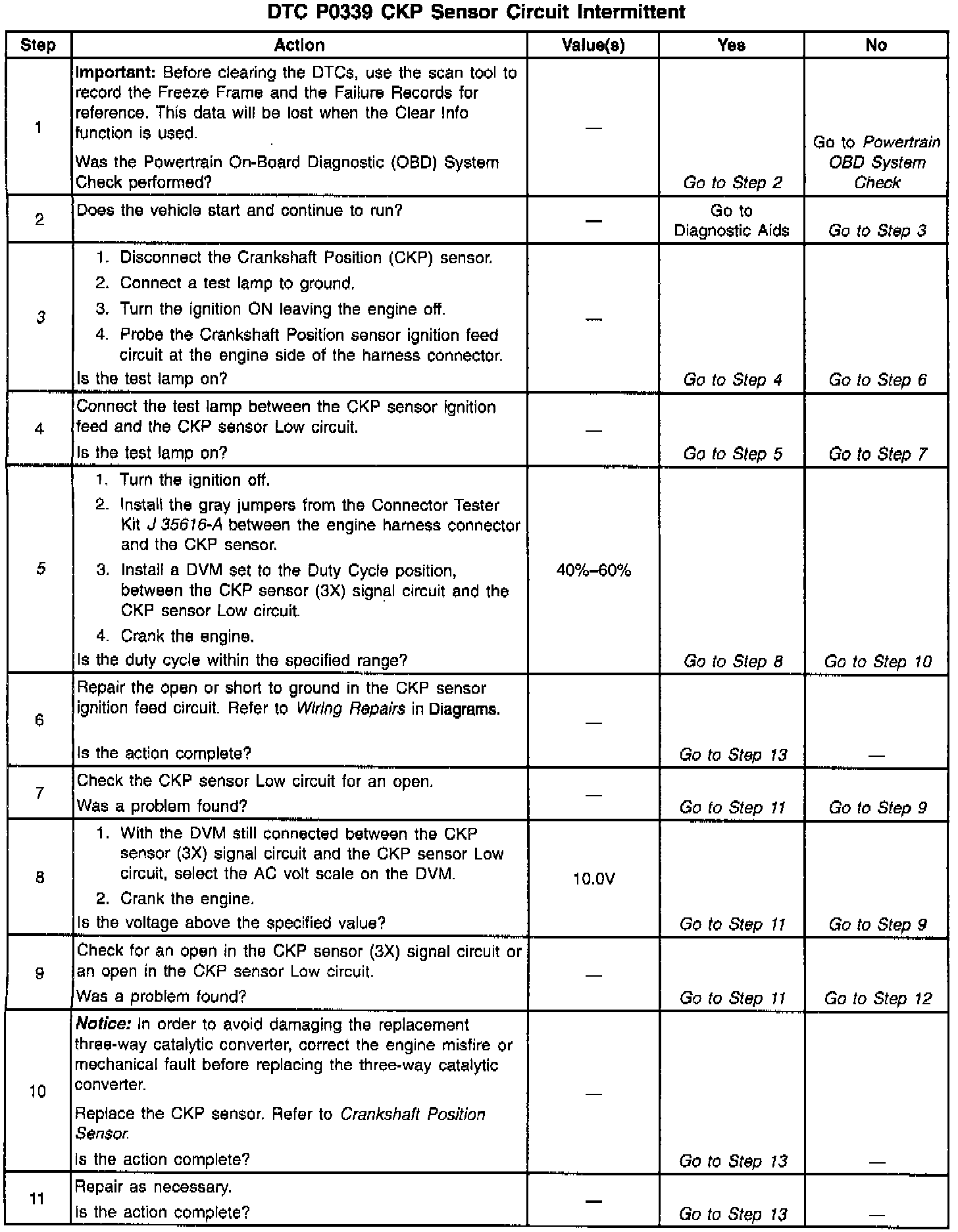 Inspect the face of the CKP sensor for metal shavings. This could result in an intermittent DTC P0339. Refer to Intermittents. - Intermittent Malfunctions