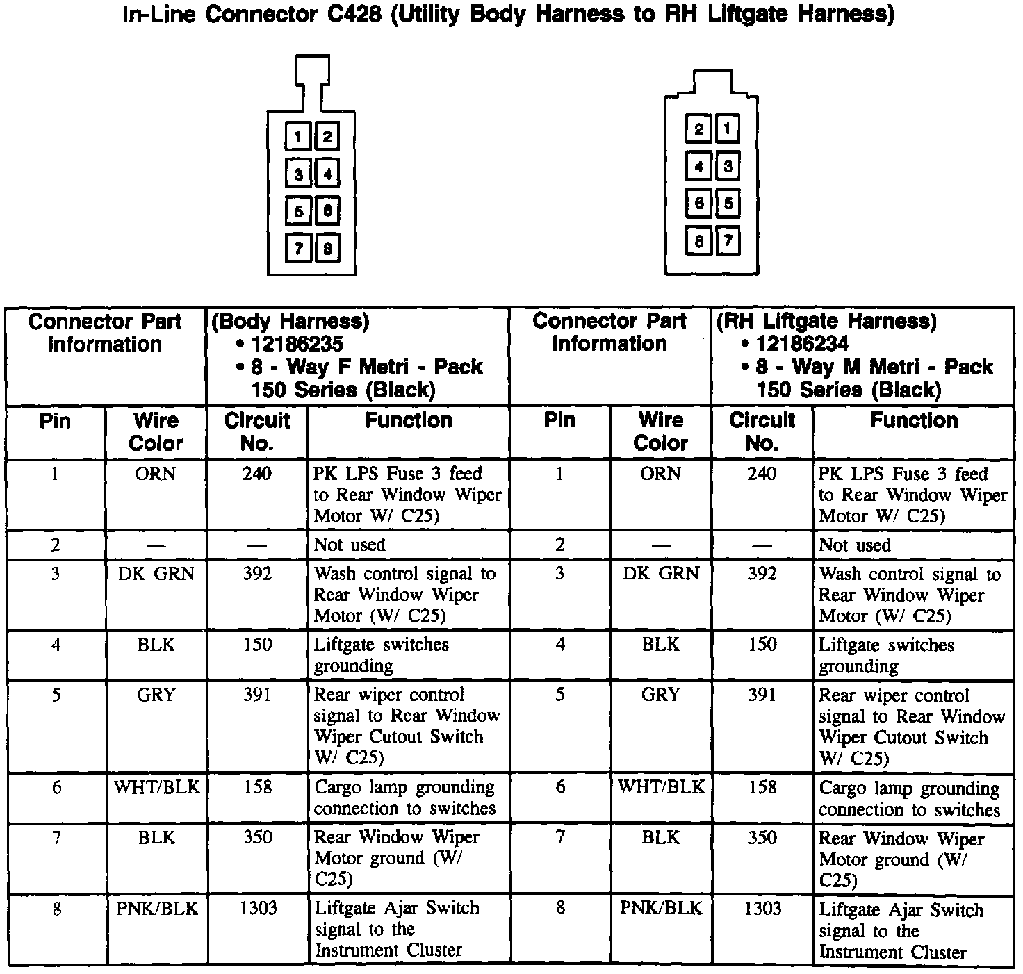In-Line Connector: C428 (Body Harness To RH Liftgate Harness):