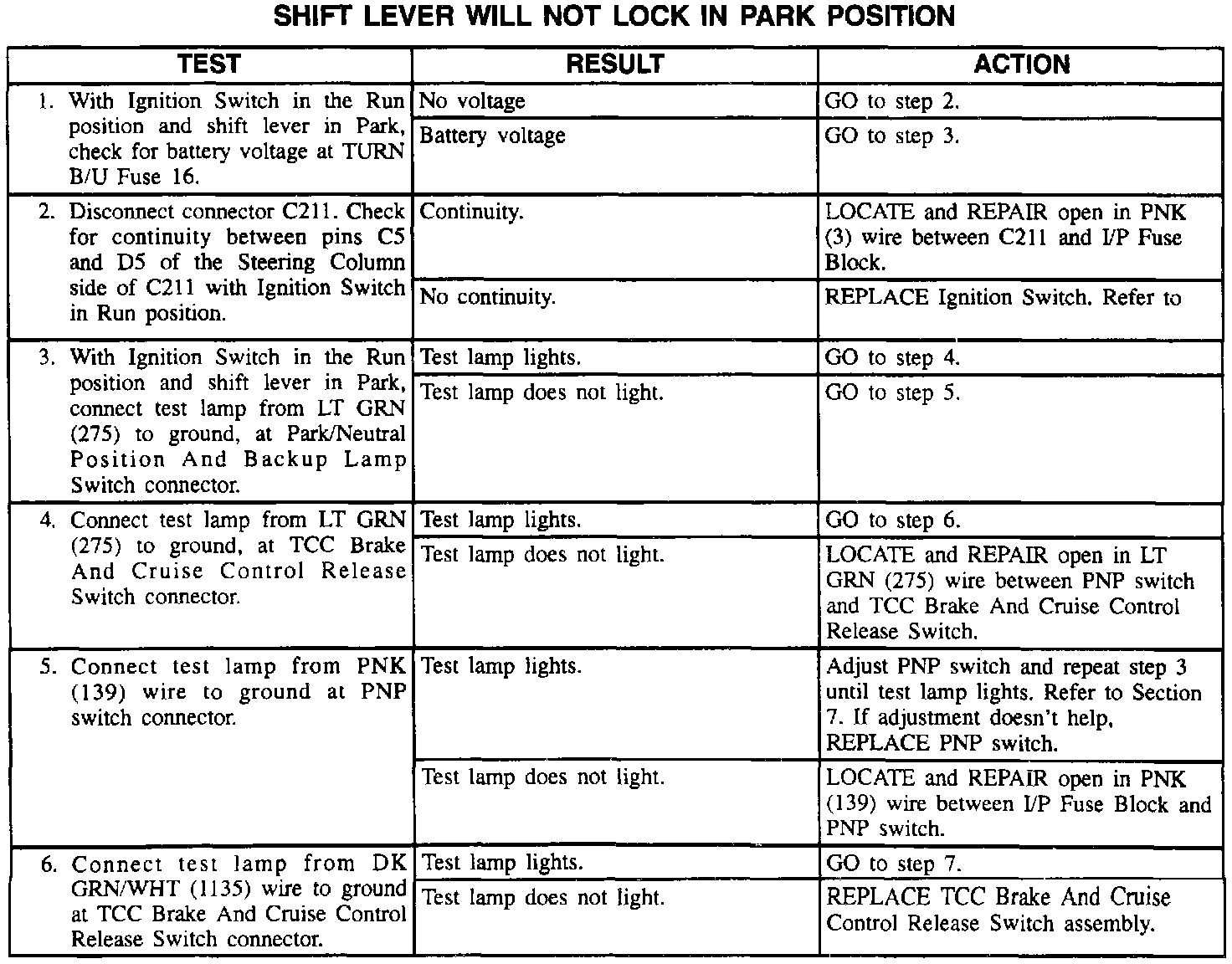 Shift Lever Will Not Lock In Park Position (Part 2 Of 2):
