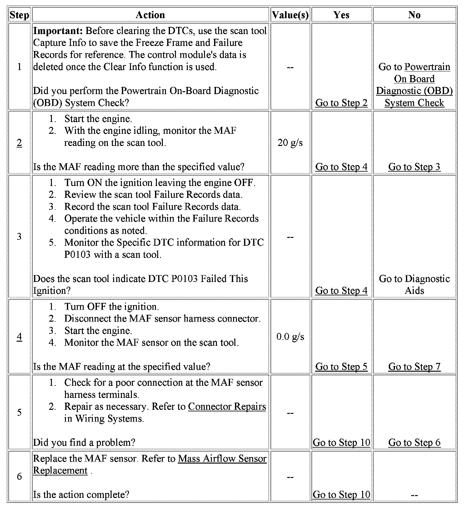 - A damaged harness. Inspect the wiring harness for damage. If the harness appears to be OK, observe the scan tool while moving connectors and wiring harnesses related to the MAF sensor. A change in the display will indicate the location of the malfunction.