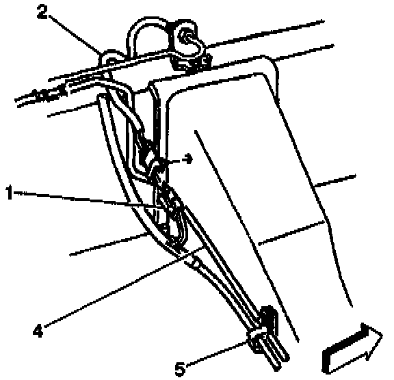 7. Wheel speed sensor wire mounting clip (5) attached to the frame rail.