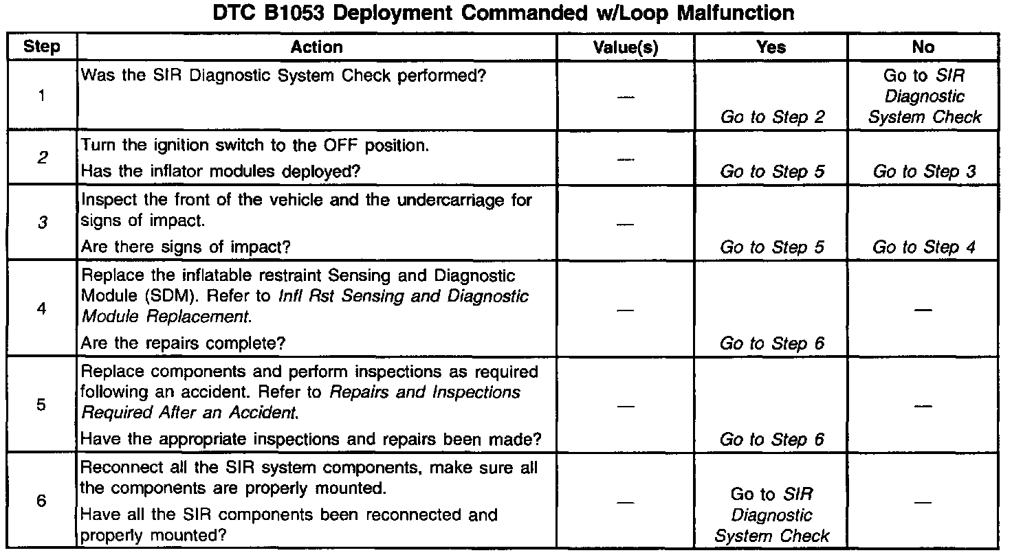 2. If the inflator module(s) has not deployed, DTC B1053 may have set falsely.