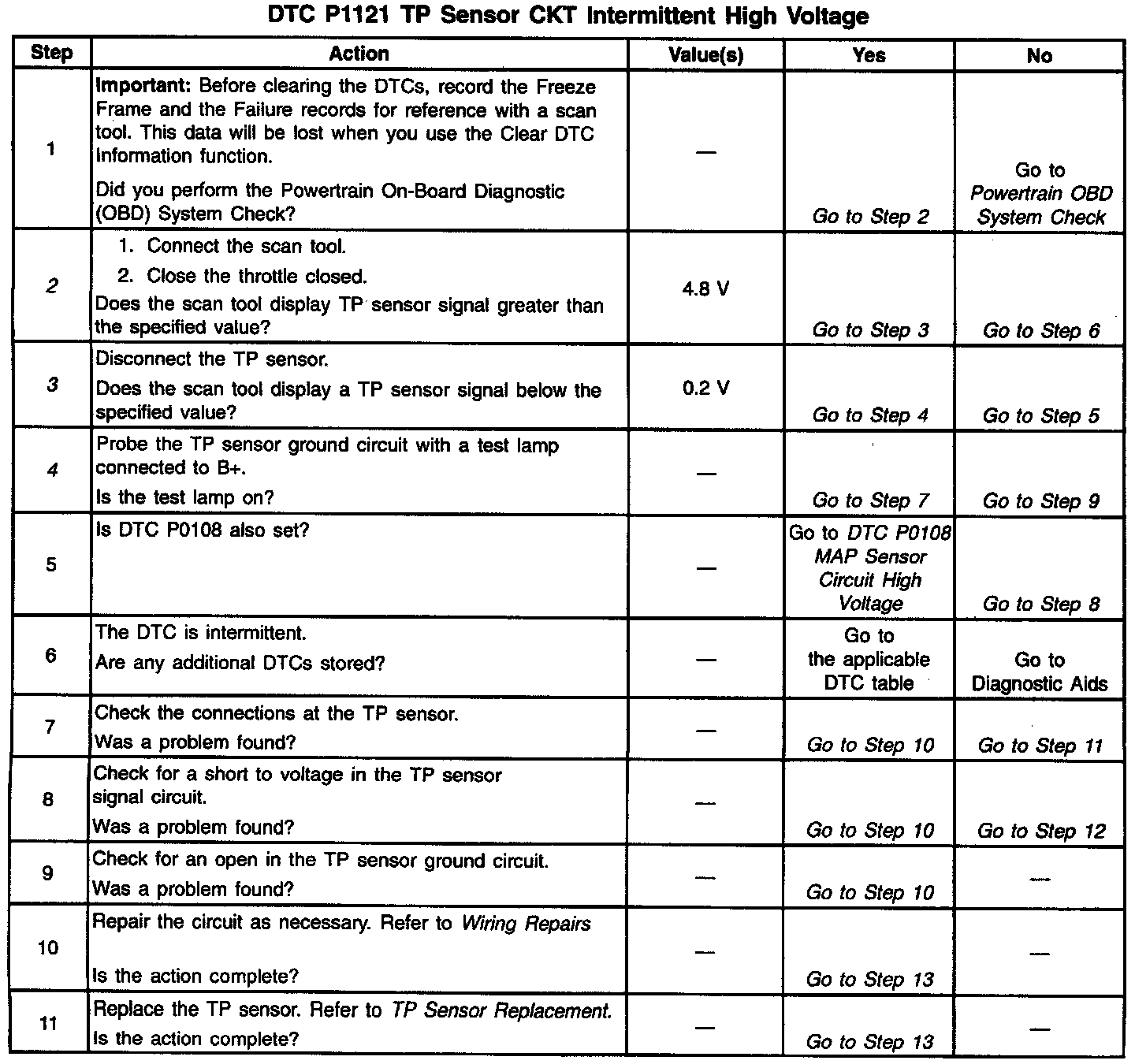 3. With the TP sensor disconnected, the TP signal voltage should go low if the VCM and wiring is OK.