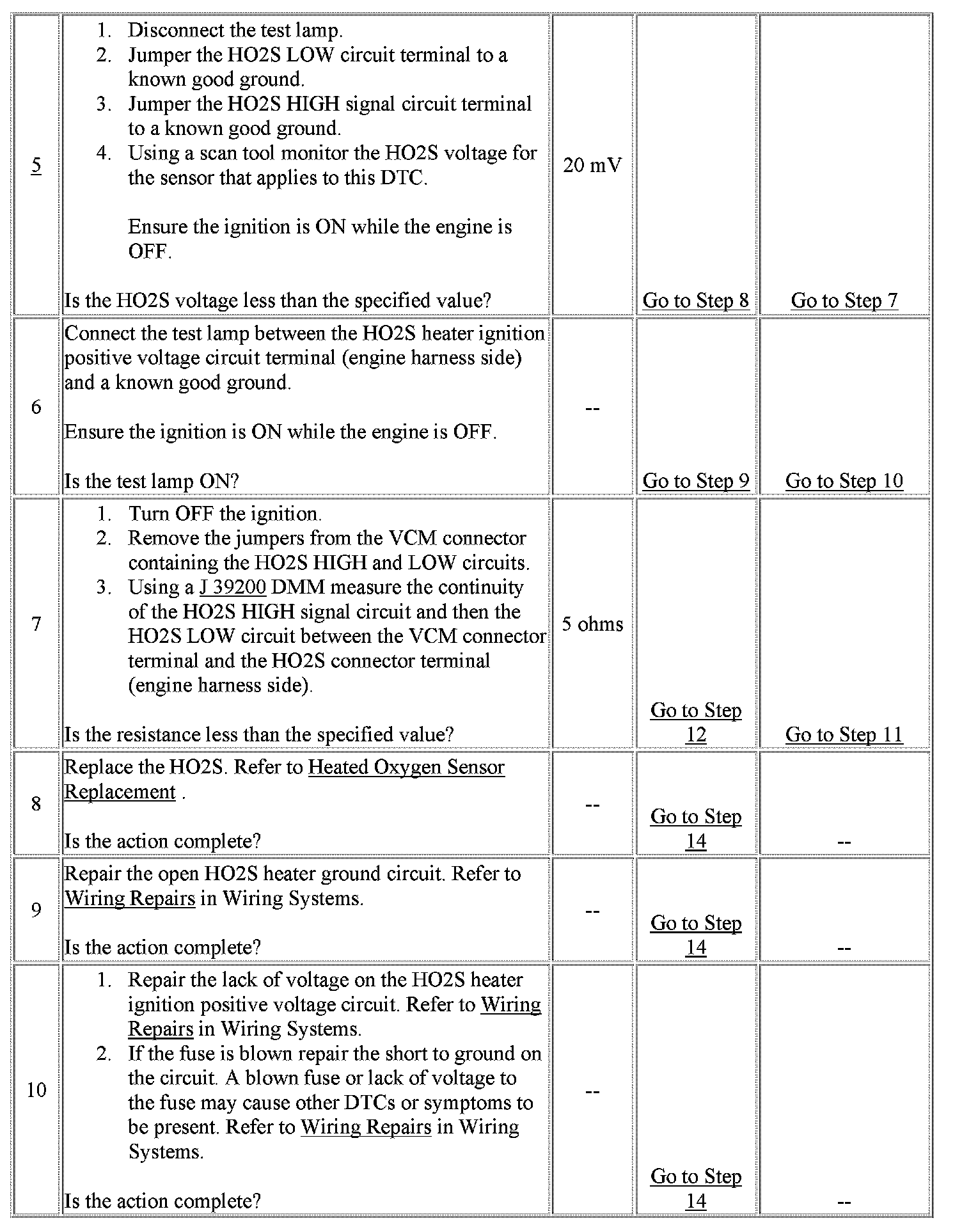 - An open or a short to voltage on either the HO2S signal or HO2S low circuits.