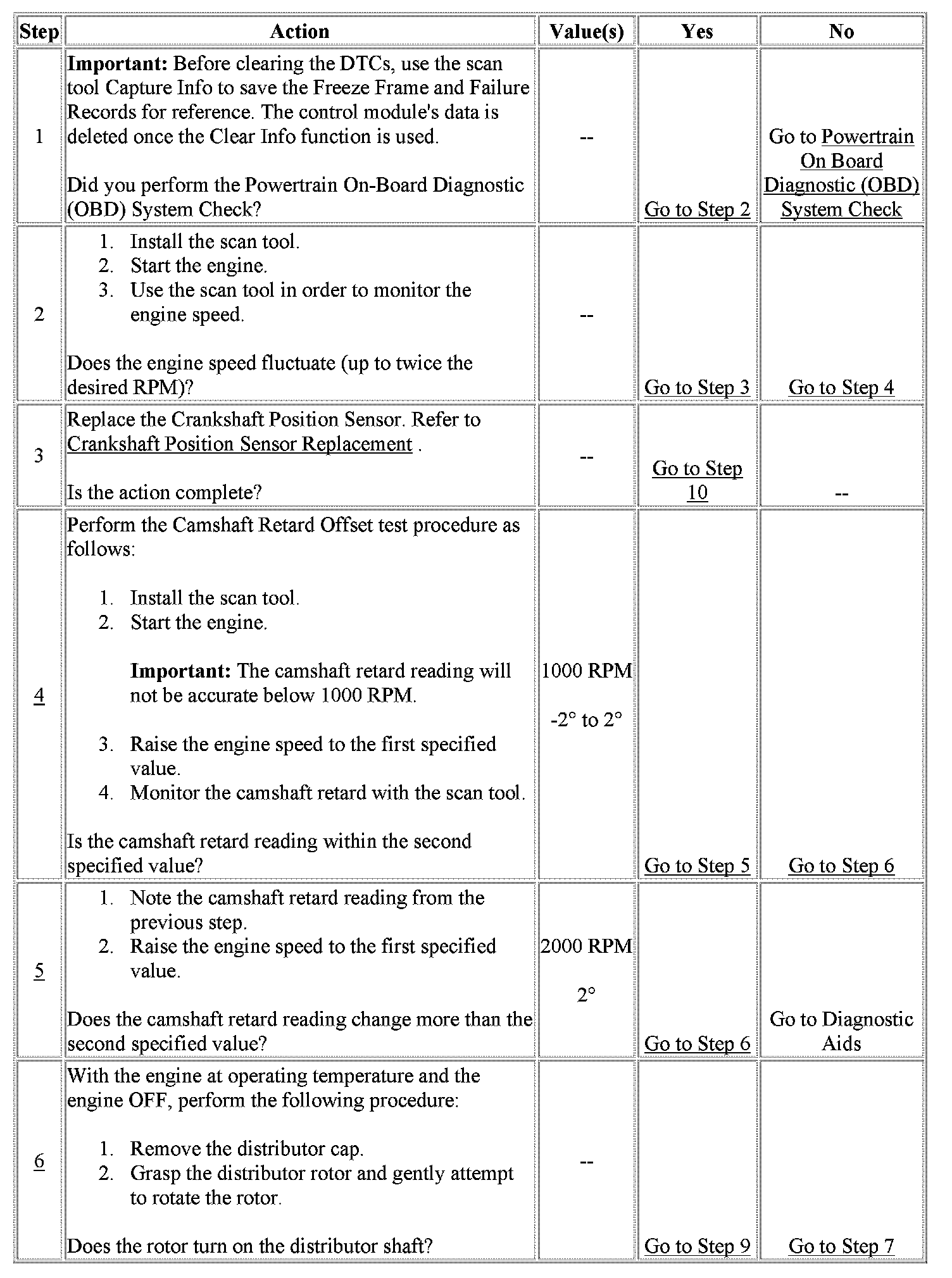 7. If the distributor is one tooth off in either the advanced or retard positions the vehicle may run but 0 degrees camshaft retard offset will not be obtained.