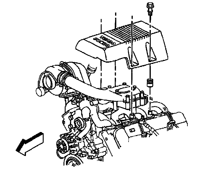 4. Loosen the clamps on the hose between the turbocharger and the upper intake manifold.