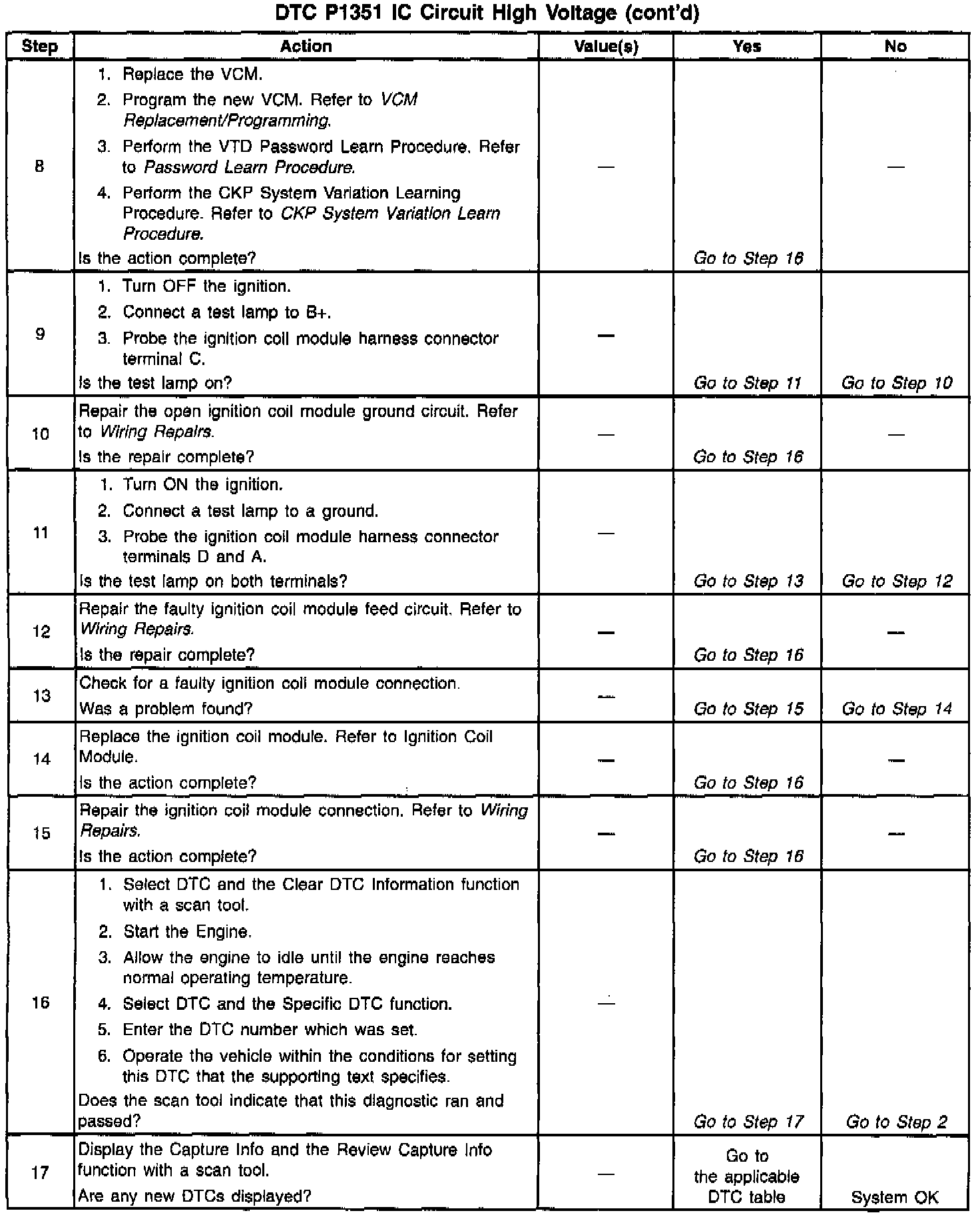 The numbers below refer to the step numbers in the diagnostic table.