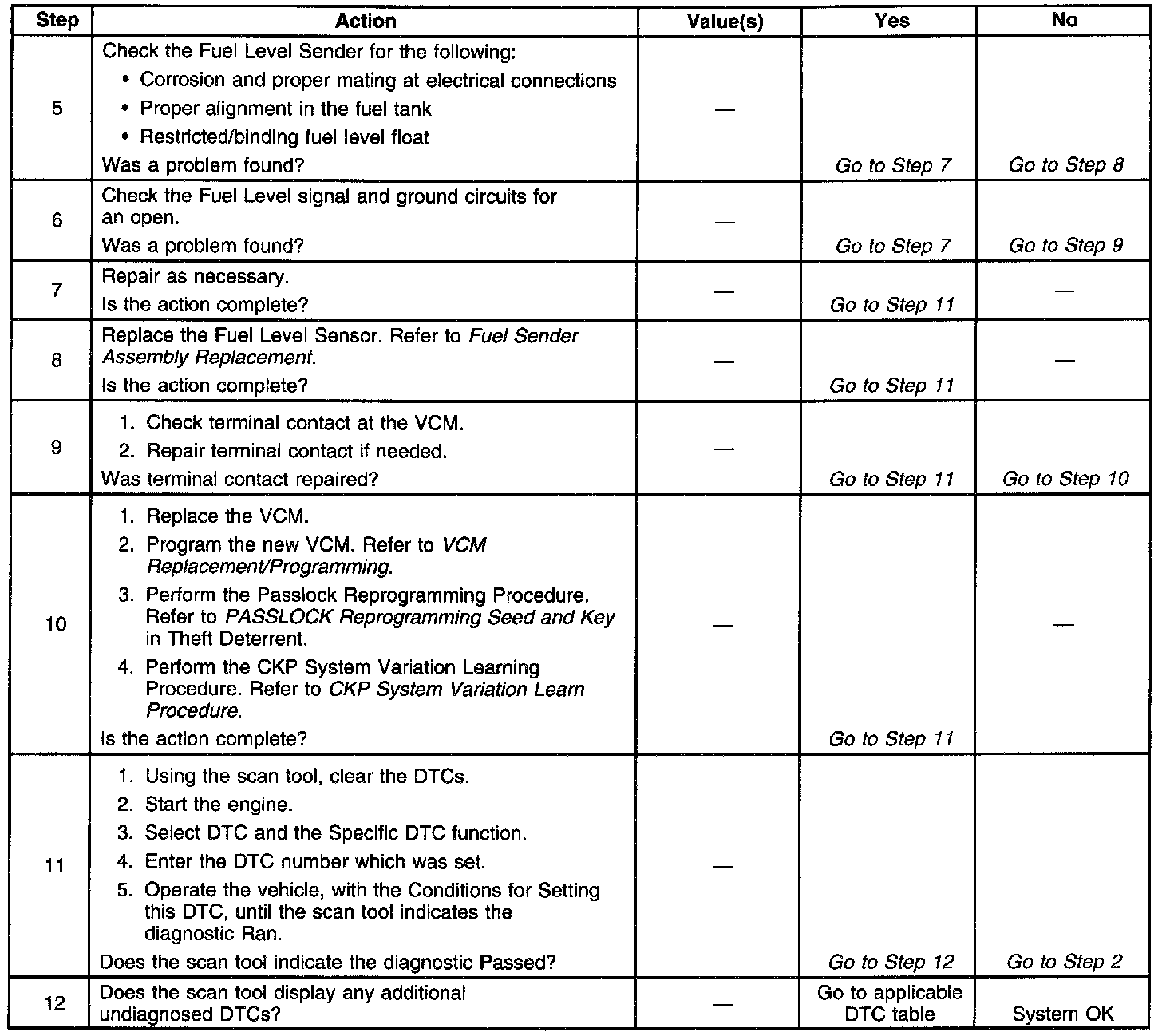 Number(s) below refer to the step number(s) on the diagnostic table.