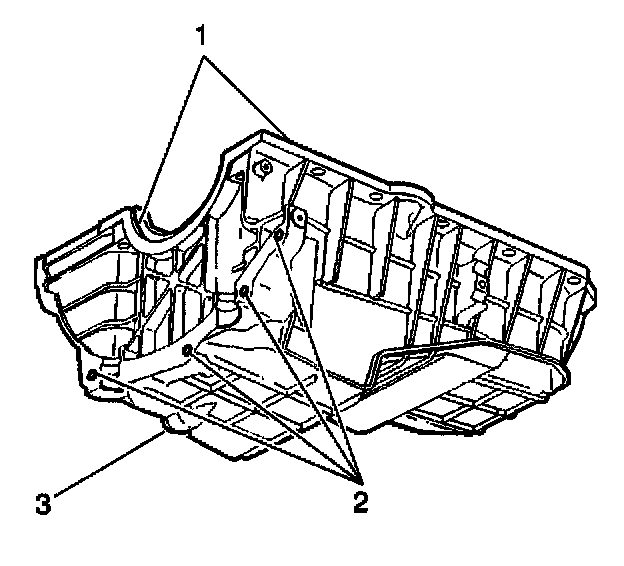 - Gouges or damage to the oil pan sealing surfaces (1)