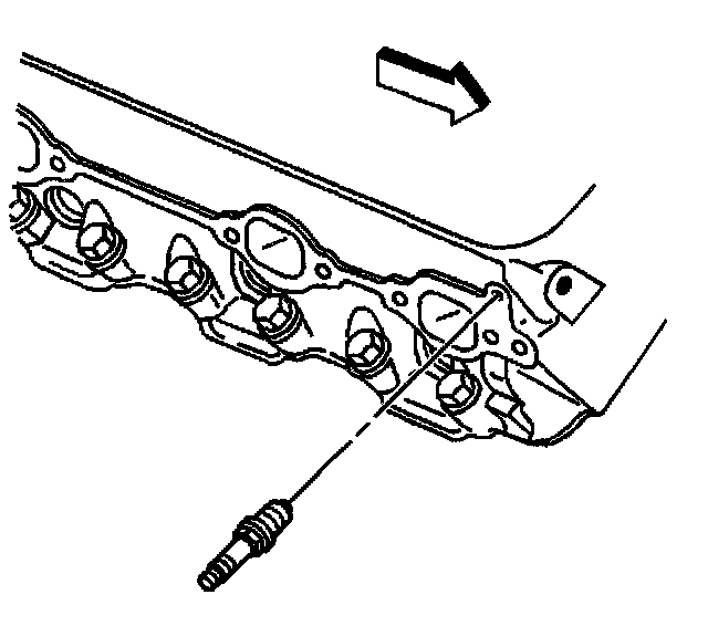11. Remove the front spark plug wire support bolt. The front spark plug wire support bolt is used to fasten the oil level indicator tube, and will be installed within the oil level indicator tube installation procedure.
