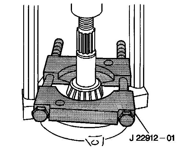 23. Remove the bearing from the pinion using the J 22912 - 01 and a press.