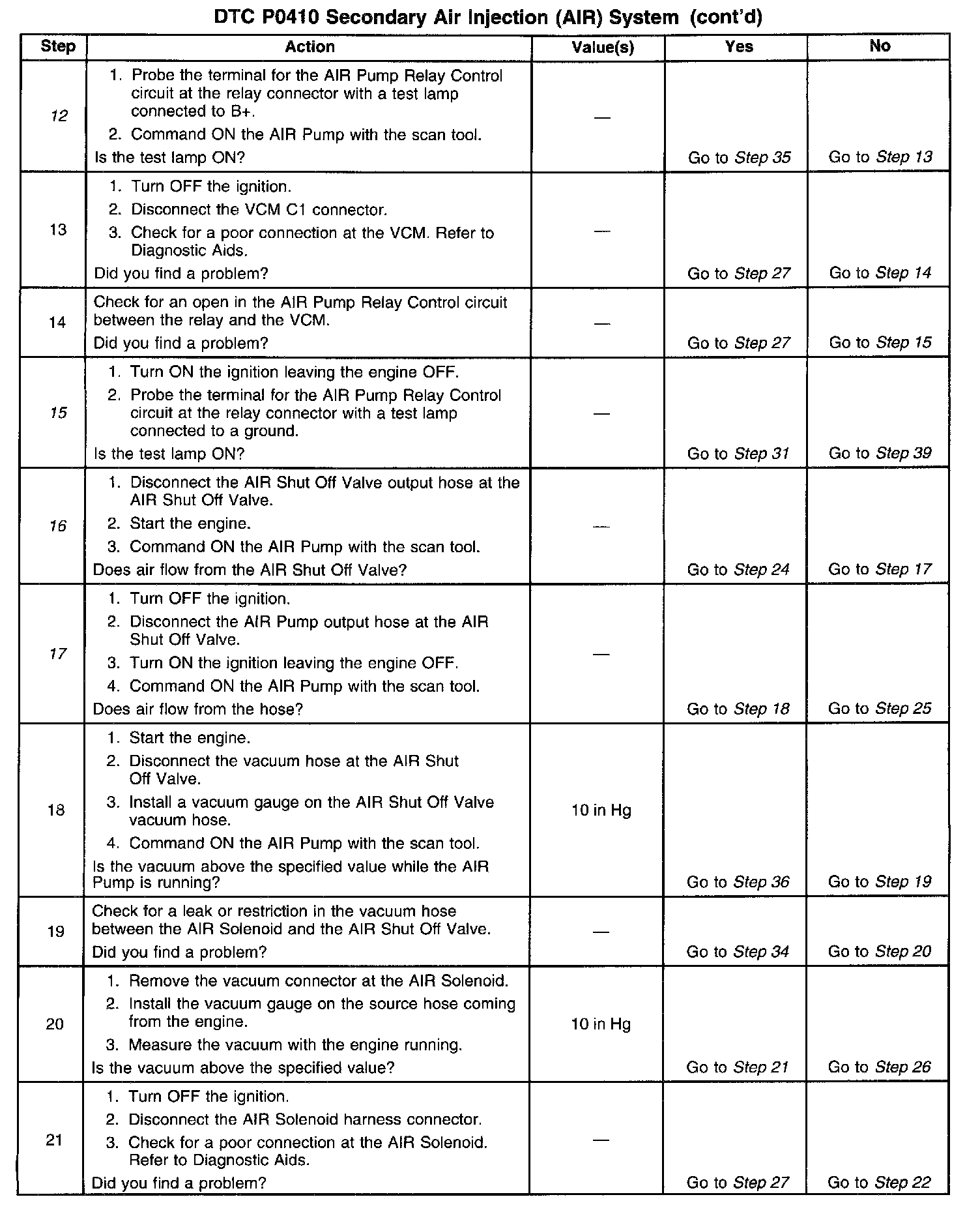 12. This step will determine if the VCM is capable of controlling the AIR Pump Relay.