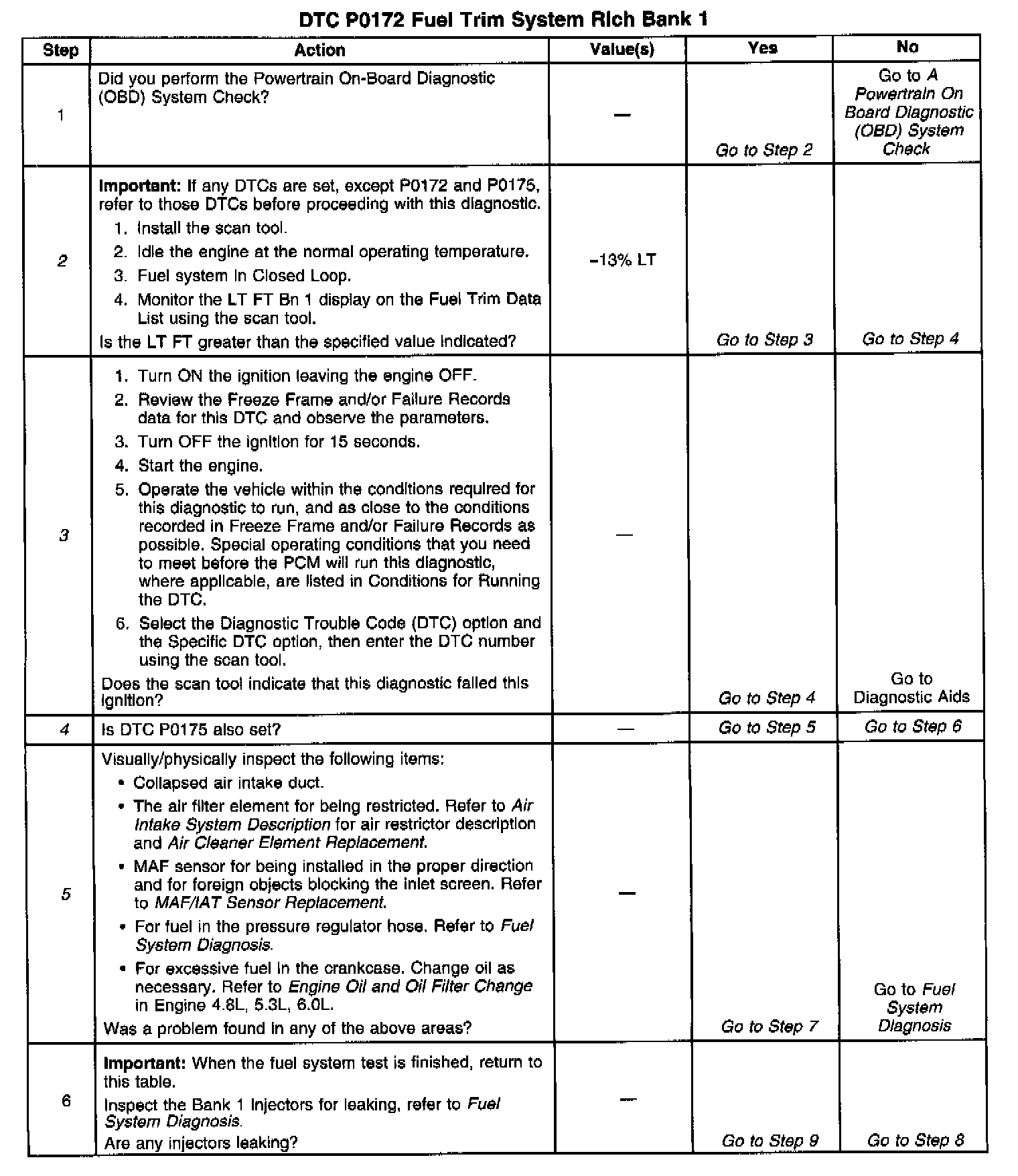 4. If DTC P0175 is also set, then both banks are operating rich. Inspect items that would cause both banks to operate rich.