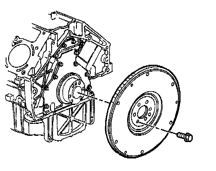 IMPORTANT: Note the position and direction of the engine flywheel before removal. The flywheel does not use a locating pin for alignment and will not initially seat against the crankshaft flange, but will be pulled onto the crankshaft by the engine flywheel bolts. This procedure requires a three stage tightening process.1. Remove the engine flywheel bolts.