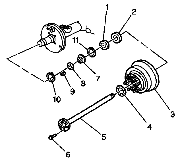 1. Install the hub and drum assembly (3) to the axle.
