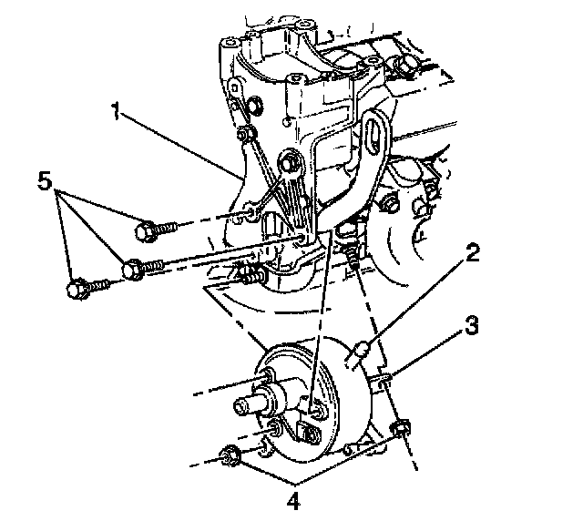 8. Loosely install the pump assembly to the engine using the bolts (5) and the nuts (4).