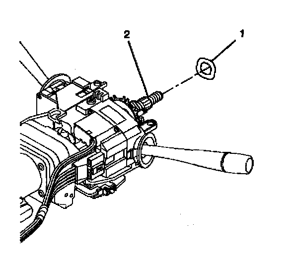 3. Install the wave washer (1) onto the steering shaft assembly (2).