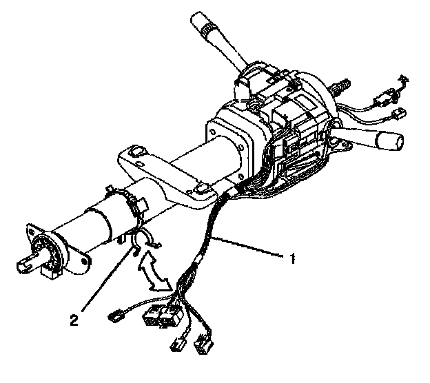 11. Install the wire harness assembly (1) to the wire harness strap (2).