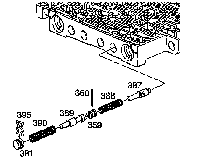 22. Remove the 3-2 downshift valve spring (390) and the 3-2 downshift valve (389).