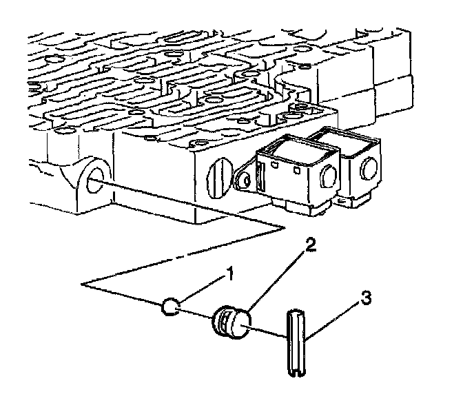 19. Remove the shift valve fluid filter bore plug pin (3).