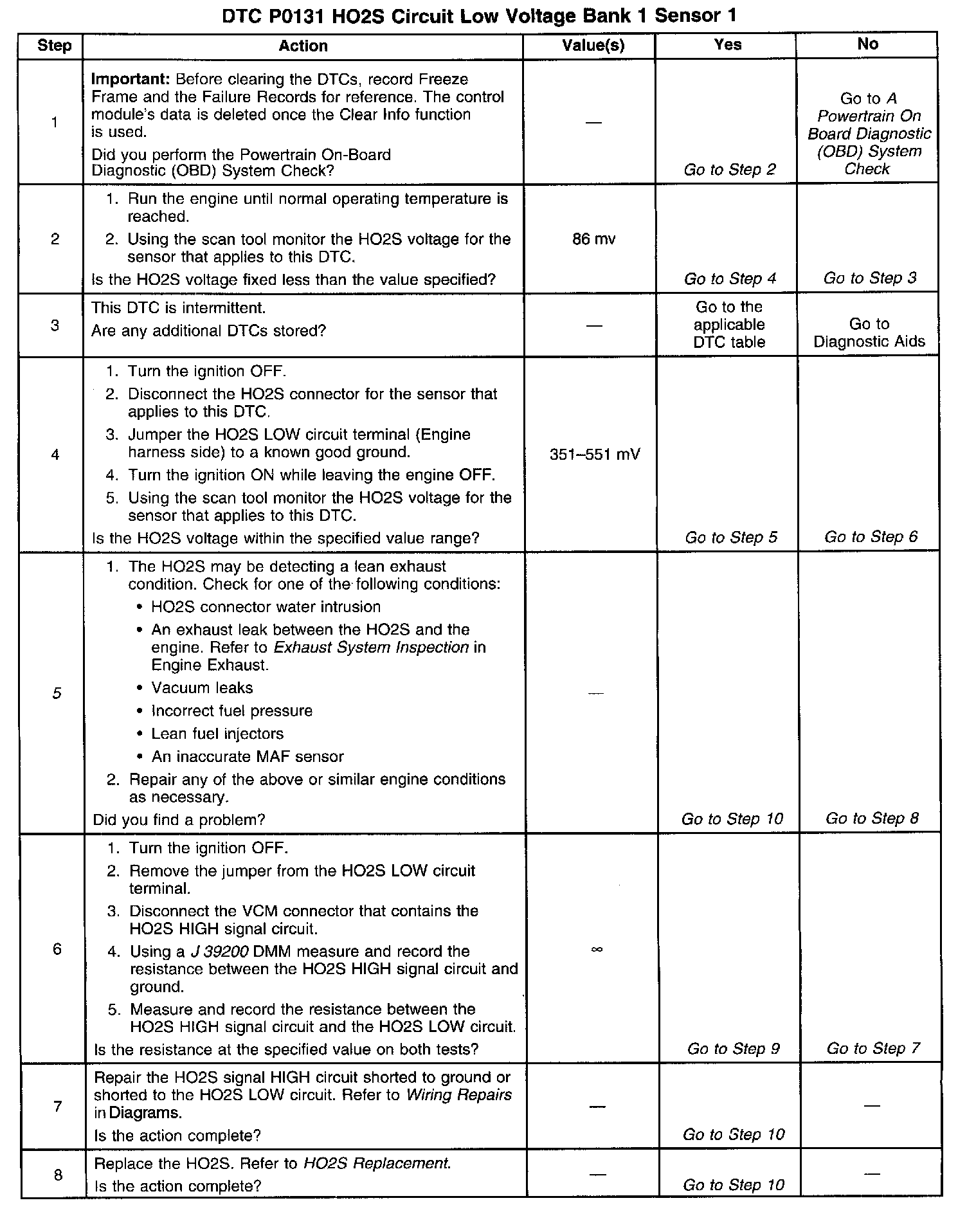^ An open or a short to voltage on either the HO2S signal or HO2S low circuits.