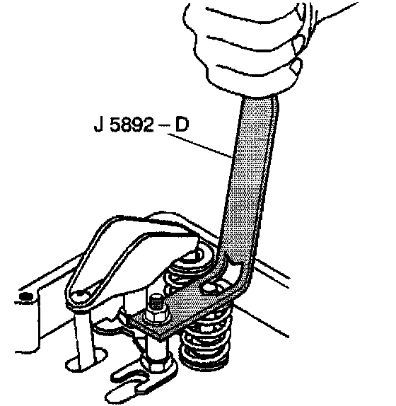 Notice: When using J 38606 ensure the jaws are completely engaged on the valve spring. If the jaws are not completely engaged the jaws may slip off and scratch the valve spring. Replace the valve spring if the valve spring becomes scratch.