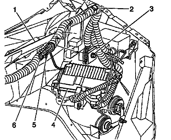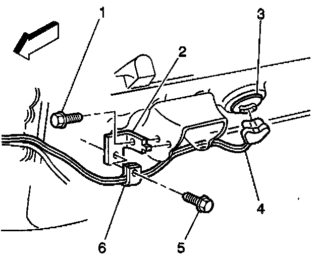 4. Install the bolt (5) retaining the cord clip (6) to the bracket (2).