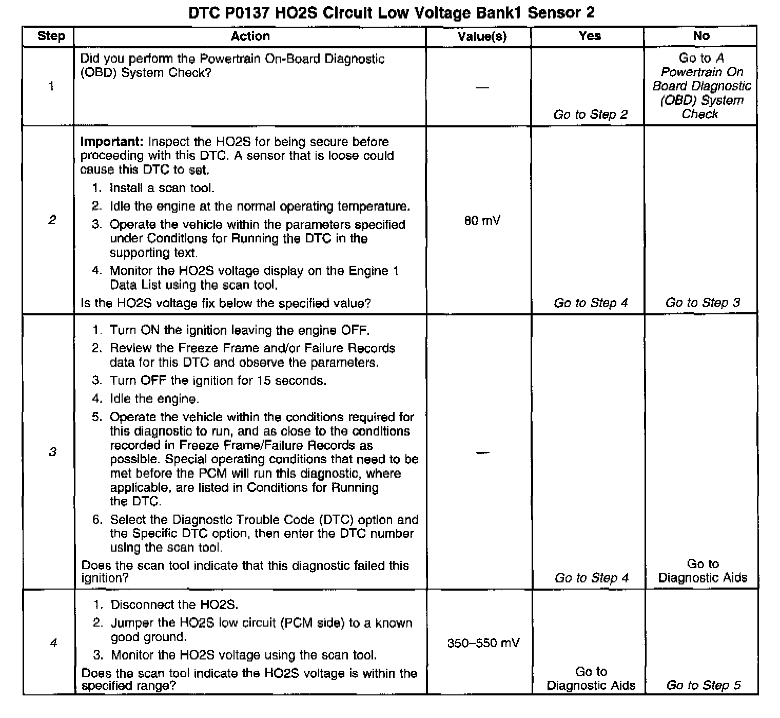 2. If the HO2S voltage is fixed well below 200 mV, this indicates a short to battery ground or chassis ground. If the voltage is fixed near or above 200 mV, this indicates a short to a PCM ground. When the HO2S voltage is fixed near 200 mV, indicates the DTC set when the fuel system was in a Power Enrichment mode of operation. This DTC sets if the HO2S voltage is less than 420 mV during a Power Enrichment mode of operation.