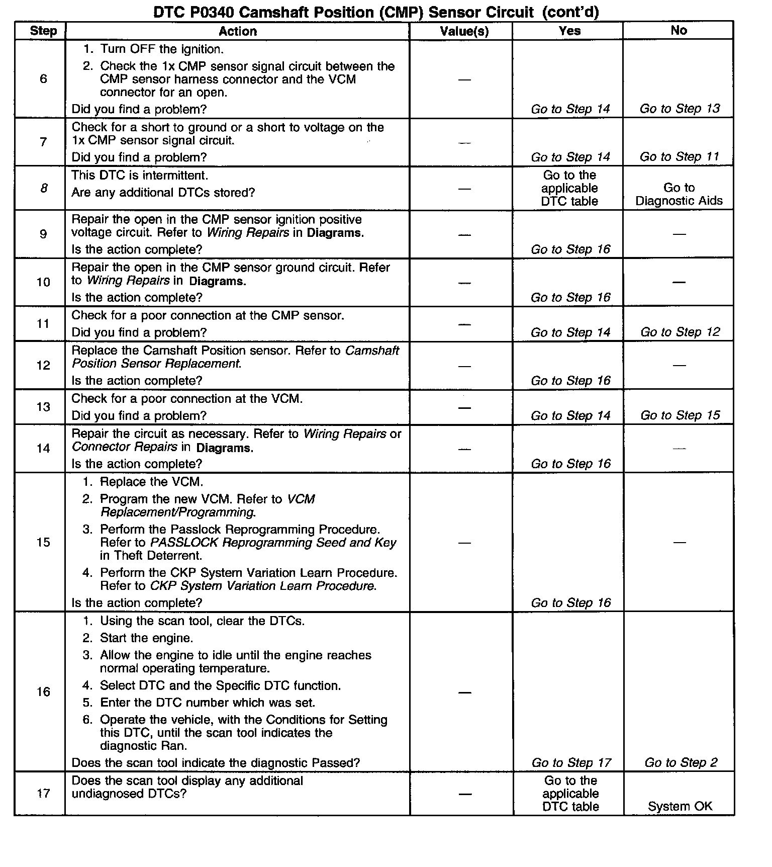 8. If there is not any additional DTCs set, refer to Diagnostic Aids for examples of conditions that could cause an intermittent loss of signal from the CMP sensor.