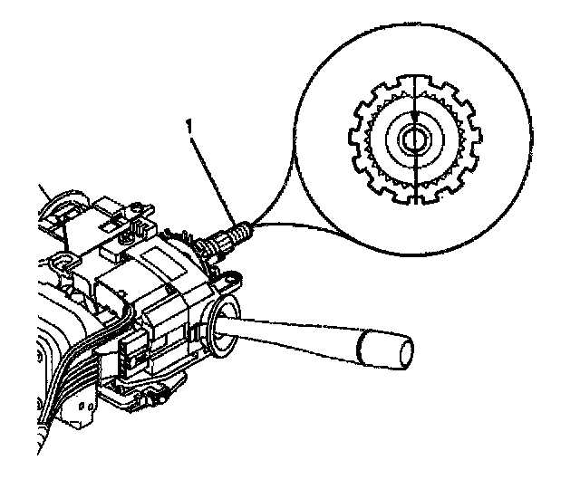 - The block tooth (1) of the steering shaft assembly is in the 12 o'clock position.