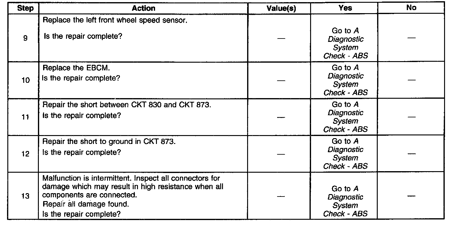6. This step checks for a short to ground in the left front wheel speed sensor circuit.