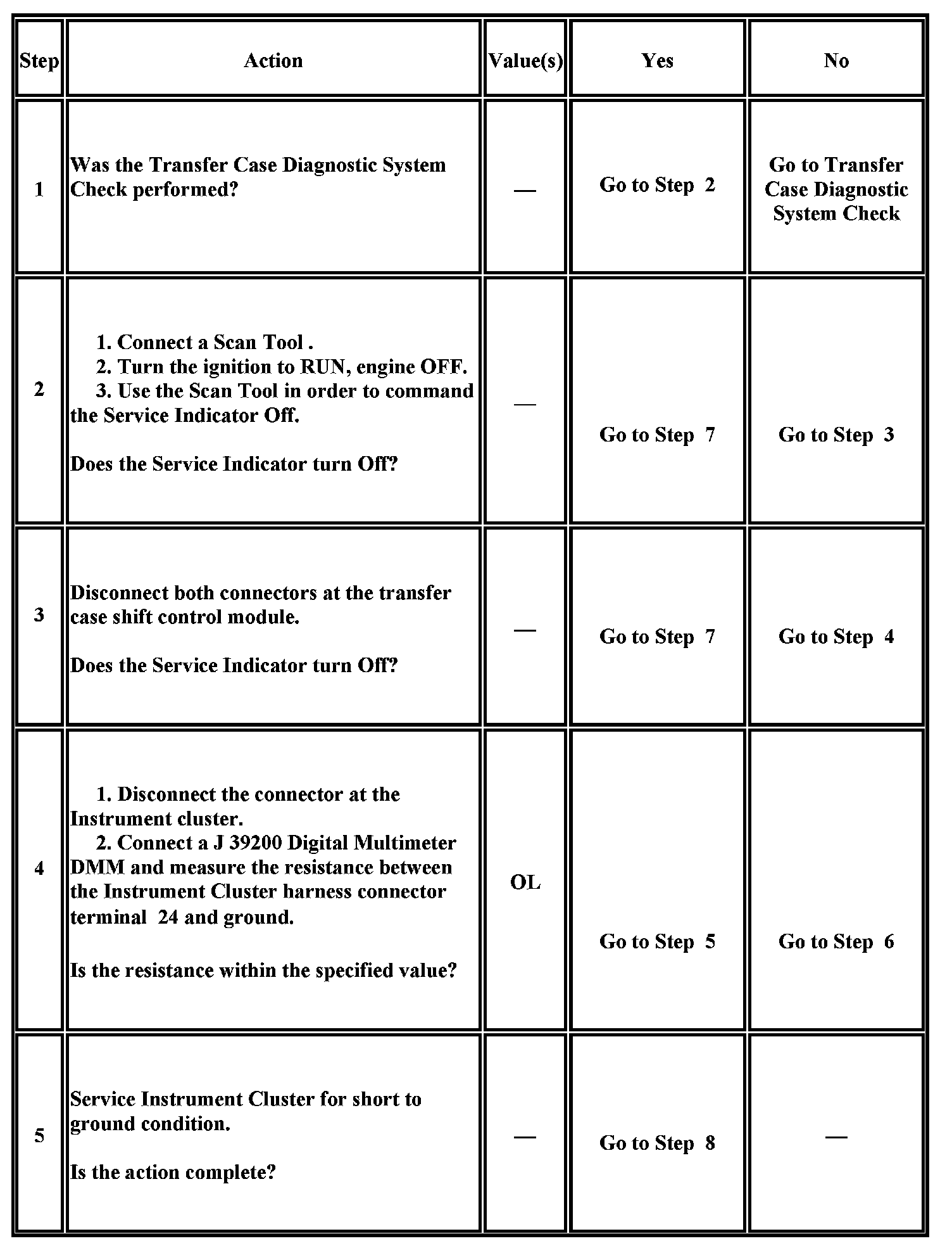 2. This step determines if the transfer case shift control module has electronic control of the Service Indicator.