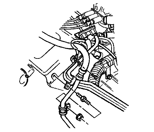 6. Remove the air conditioning compressor, if equipped, and move aside. Refer to Compressor Replacement in Heating and Air Conditioning.