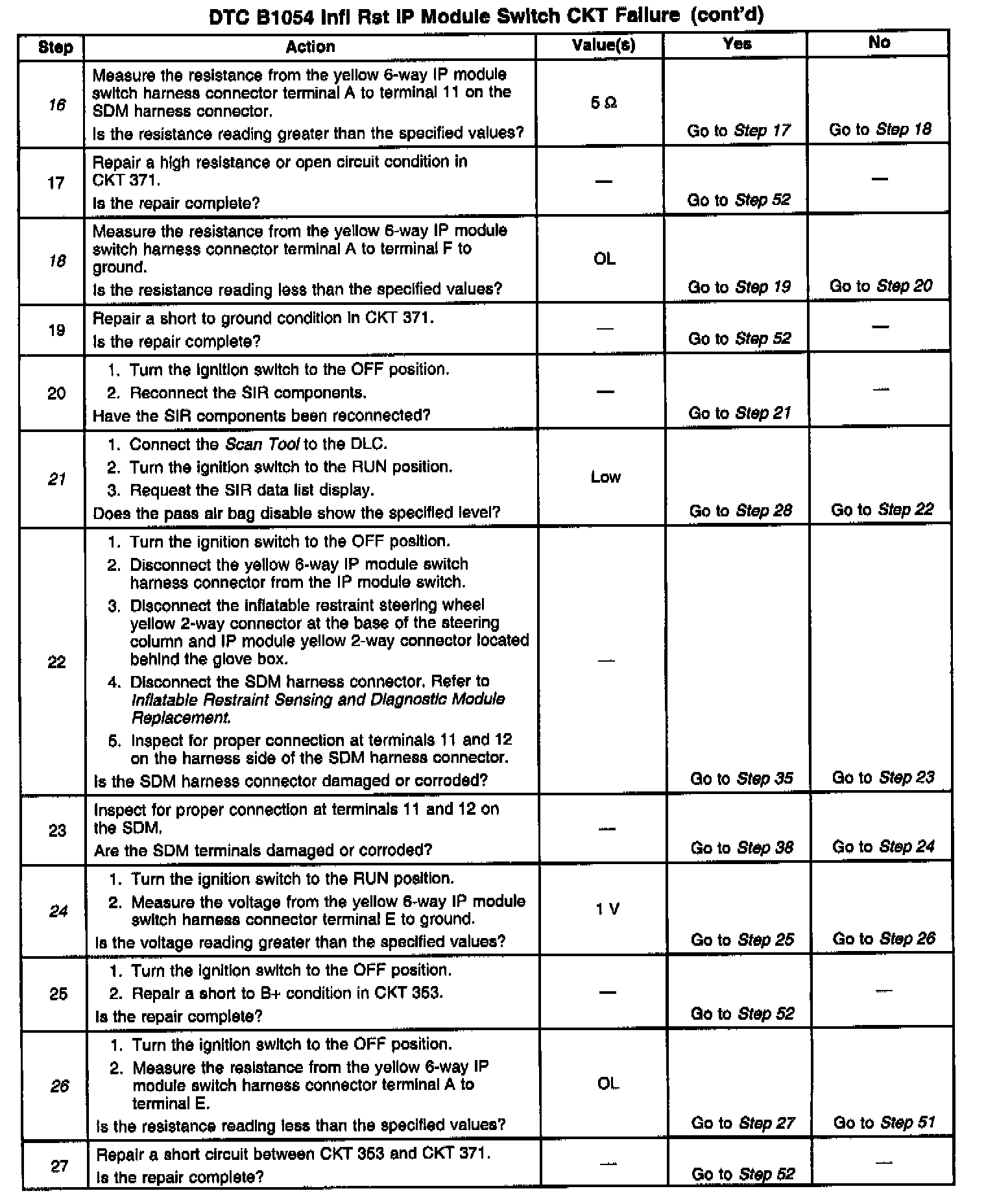 46. This test determines if the state of terminal 11 of the SDM (pass air bag enable) is correct when the IP Module Switch is in the OFF position.