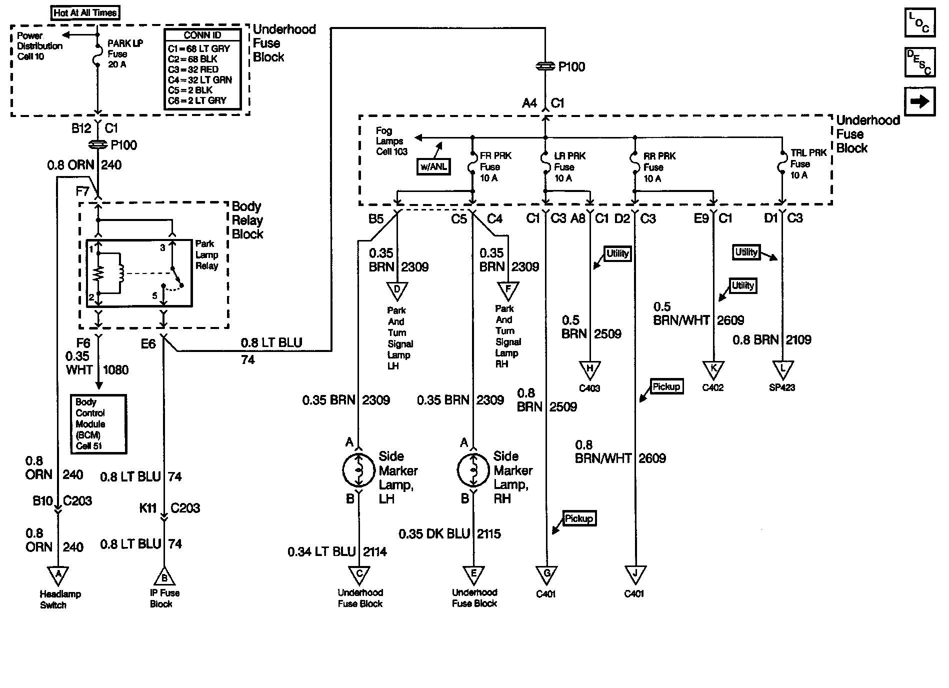 Exterior Lights Schematics: PARK LP Fuse and Park Lamp Relay: