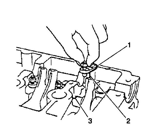 Important: Rotate the rocker arm shaft (2) so that the flat machined surface is horizontal and facing down parallel with the cylinder head (1) mating surface.
