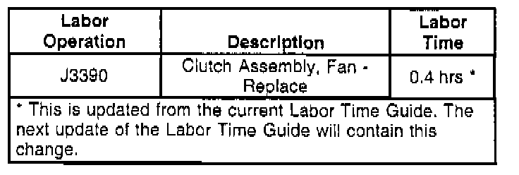 A new cooling fan clutch, P/N 91176413, is available to correct this condition. Replace the cooling fan clutch following the service procedure in the Engine Cooling sub-section of the Service Manual.