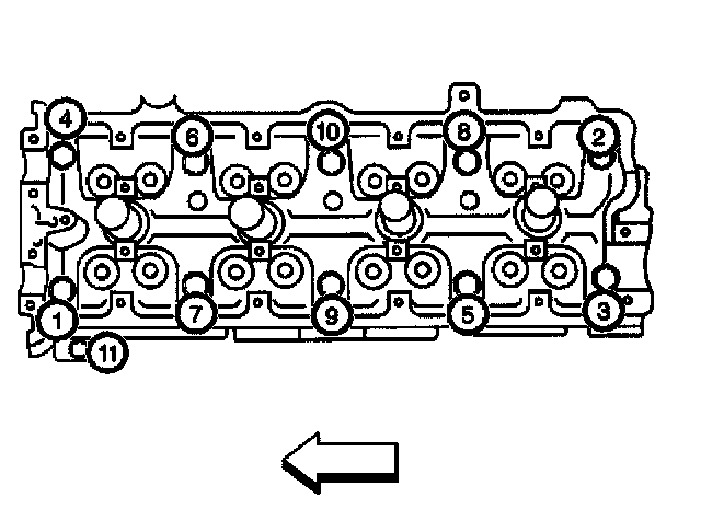 Tighten the the cylinder head bolt (11) to 11 Nm (97 inch lbs.).