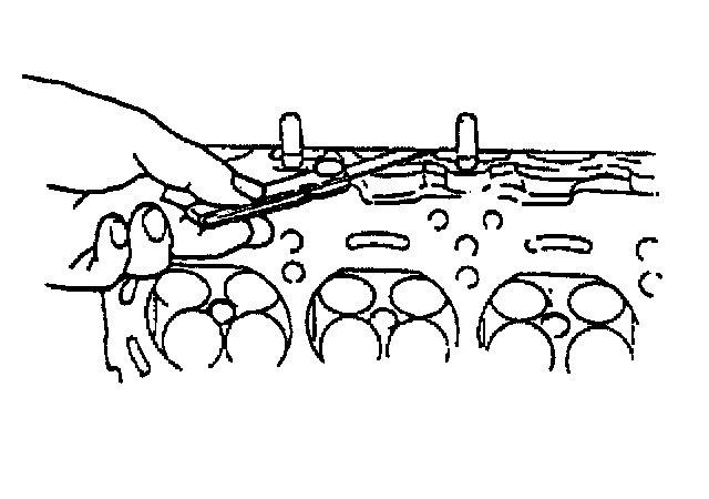 ^ Replace the cylinder head if the area between the valve seats is cracked.