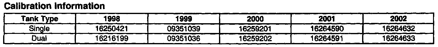 19. Reprogram the VCM (1998-2000 models) or the PCM (2001-2002 models) using the calibration information shown.