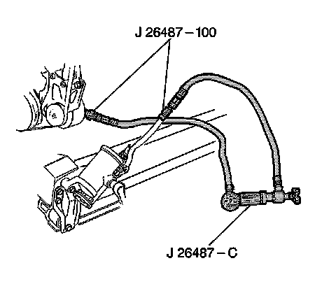 Caution: If the date of manufacture is earlier than 1999, use the analyzer adapters J-26487-100 in order to pressure test a power steering system with quick-connect fittings. If the date of manufacture is after January 1, 1999, use the analyzer adapters J-26487-200. Failure to use the correct adapters may result in vehicle damage and in personal injury.